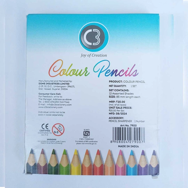 C3 Colour Pencils 12 Shades 85mm 1U