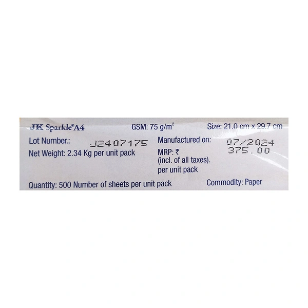 JK Sparkle 75 GSM A4 500 Sheets 1U